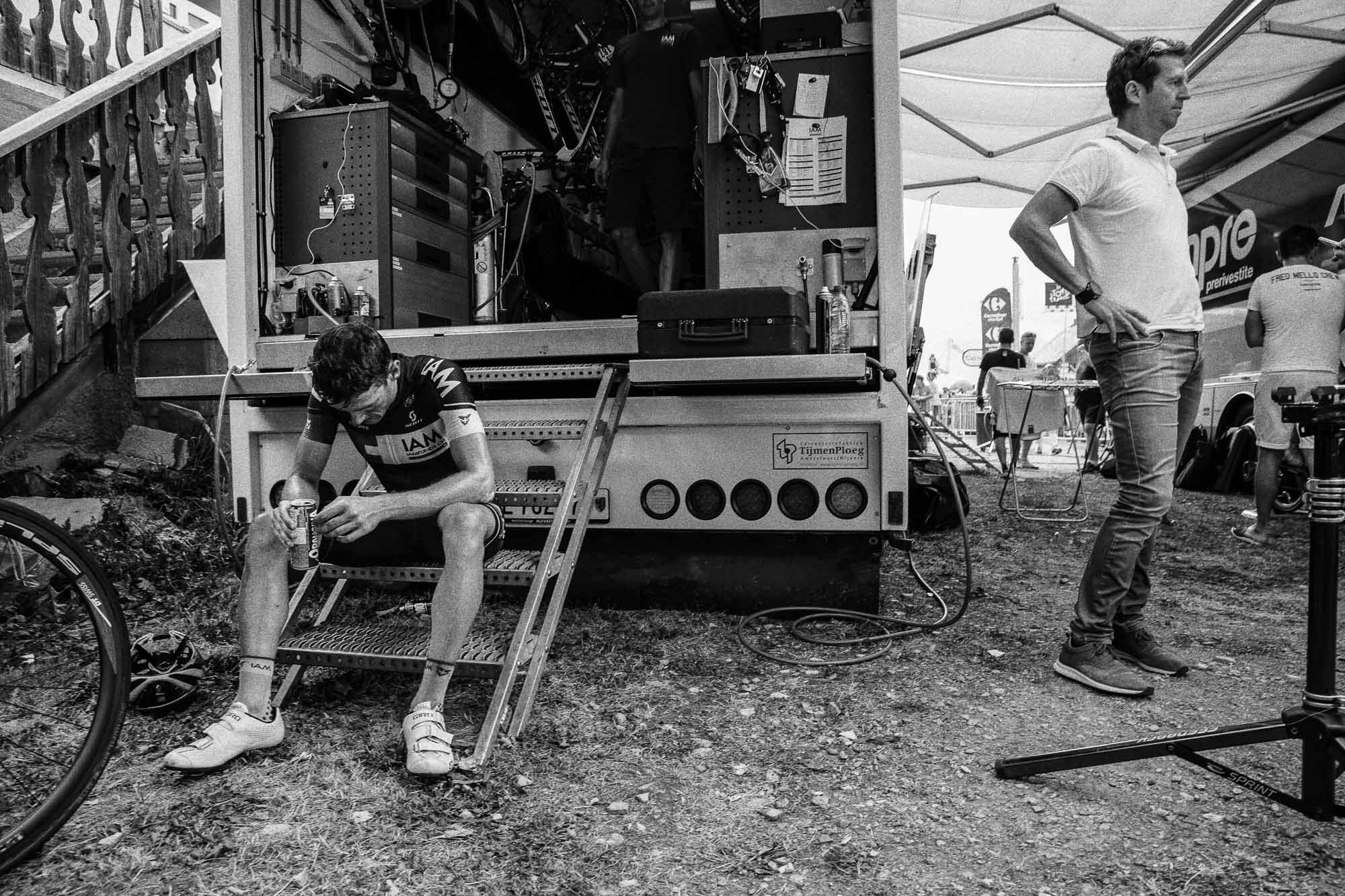 Reportage en immersion dans les coulisses du Tour de France, au sein de l’équipe professionnelle World Tour Suisse IAM Cycling. Directeur sportif, masseurs, cuisinier, mécaniciens, attaché de presse et assistants travaillent d’arrache-pied 18 heures par jour durant les 3 semaines que dure le Tour de France afin de procurer aux coureurs les conditions optimales de réussite. Malgré cela, ces derniers doivent affronter les 21 terribles étapes de la course cycliste la plus difficile et la plus médiatisée du Monde. La terminer est déjà un exploit… et ceux qui y parviennent le font dans un état de fatigue extrême malgré tous les efforts de leur staff.